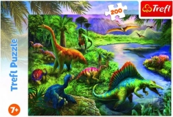 Kleurrijke kinderpuzzel van TREFL met het thema roofzuchtige dinosaurussen, met 200 stukjes voor kinderen vanaf 7 jaar. Stevig karton, comfortabel grote stukjes en een levendige illustratie ondersteunen concentratie, geduld en gezamenlijk familieplezier.