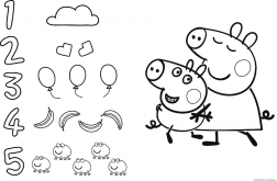 De zwart-witte zijde met afbeeldingen en cijfers helpt kinderen te oefenen met tellen van 1 tot 5 en het herkennen van objecten tijdens het kleuren.