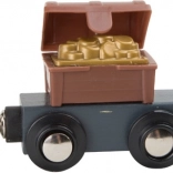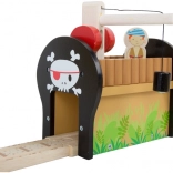Stap binnen in de wereld van piraten en fantasie. Zes piraten regeren over hun eigen treinbaan op een eiland, waar houten rails over een brug met bel lopen en de trein zowel een kanon als een met goud gevulde kist vervoert. Het kraanstation met een magnetische haak maakt het laden eenvoudig – draai aan het mechanisme en laat de magneet zakken.