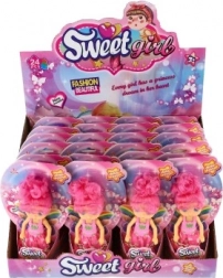 De opvallende haarkleuren en het stoffen rokje vergroten de aantrekkingskracht van de pop en stimuleren het esthetisch gevoel.