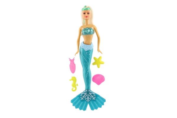 In de verpakking vind je ook thematische zee-accessoires (bijv. een zeester, een zeepaardje, schelpen) die creativiteit en zelfstandig spel stimuleren. De pop is verkrijgbaar in 3 kleurvarianten van de staart (blauw, turquoise, roze).