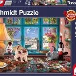 Geniet van het leggen van het originele motief “tafel van de puzzelliefhebber” met 1000 stukjes van SCHMIDT. Na het leggen meet het beeld ongeveer 69,3 × 49,3 cm – ideaal voor ontspanning en gezellige momenten.